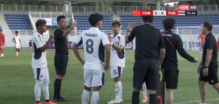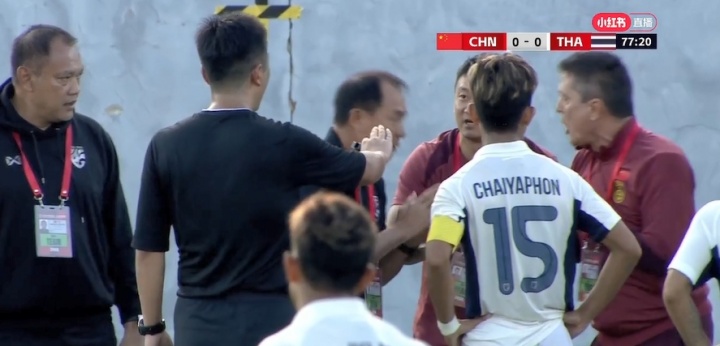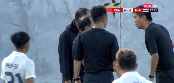 10月14日讯 U22国足vs泰国队下半场,泰国队换东说念主出景色,与裁判疏导,中国队也过来和谐。