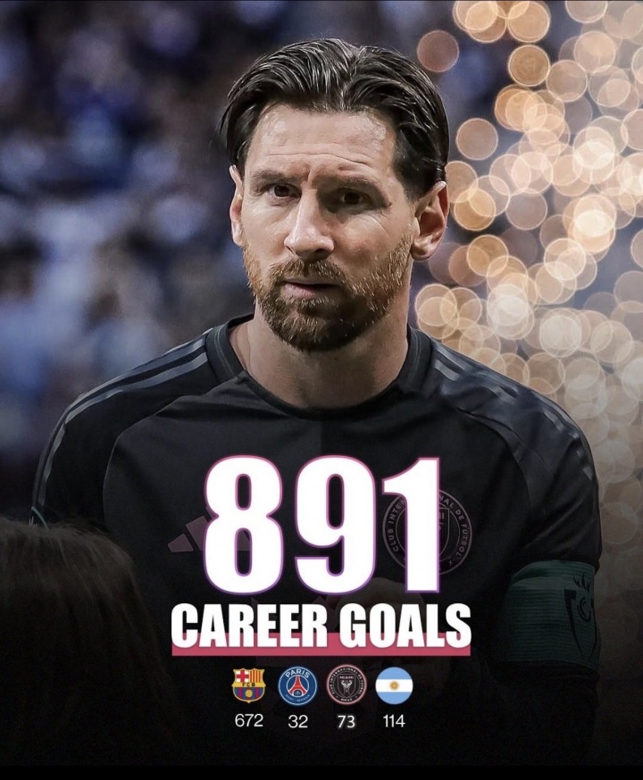 梅西前天与迈阿密外洋续约至2028年底,当天便双响,生计进球数来到891球,距离千球里程碑还有109球。