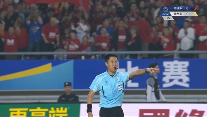 第90分钟,南通队换门将,蔡天龙替补登场。↓