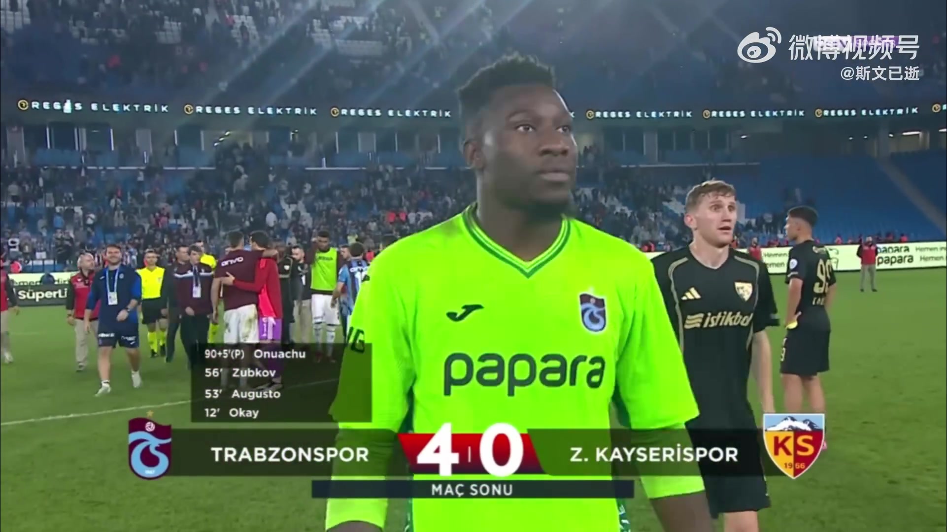 10月04日讯 土超第8轮,特拉布宗体育4-0大捷开塞利体育,奥纳纳单场7次扑救,媒体评分9.1分。