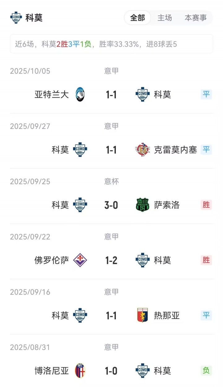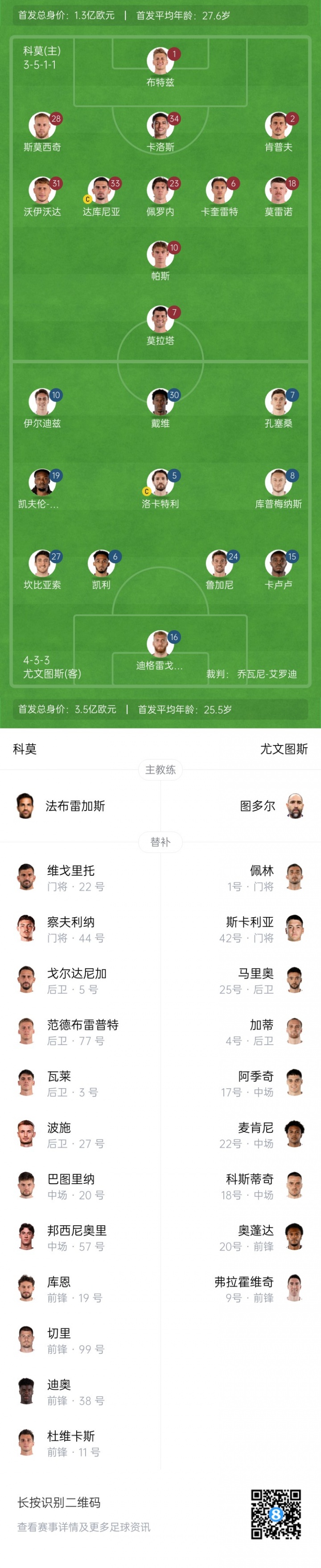 科莫替补:22-维戈里托、44-察夫利纳、3-瓦莱、5-戈尔达尼加、27-波施、77-范德布雷普特、20-巴图里纳、57-邦尼西奥里、11-杜维卡斯、19-库恩、38-迪奥、99-切里