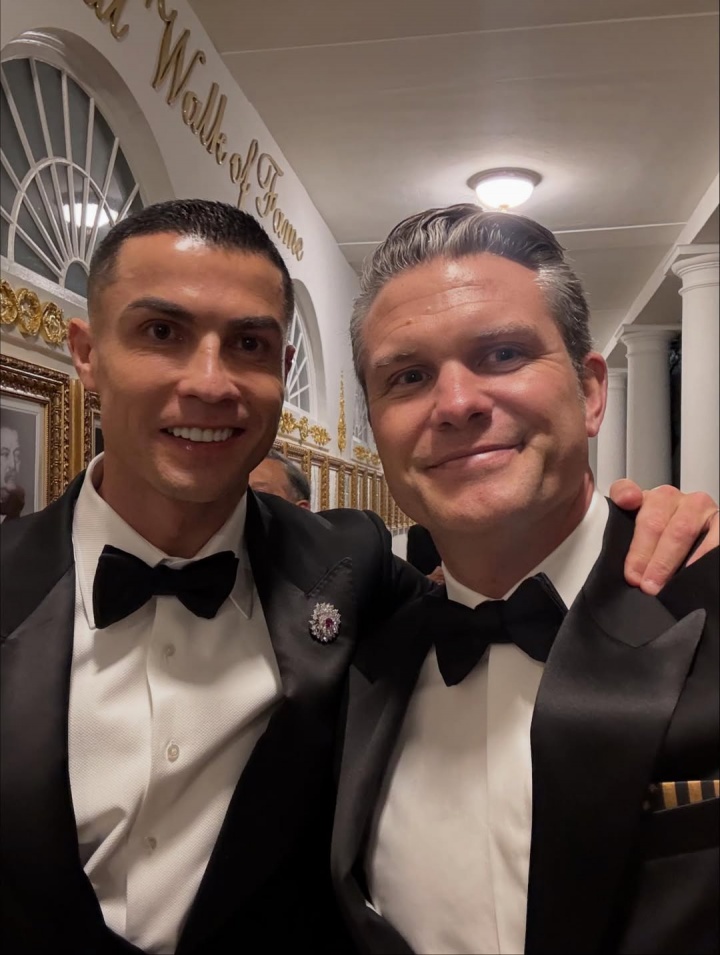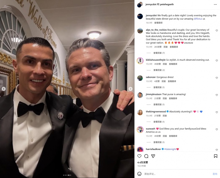 11月21日讯 好意思国干戈部部长赫格塞斯在个东谈主外交媒体发布了一系列像片动态,其中包含一张晚宴技术与C罗的合影。