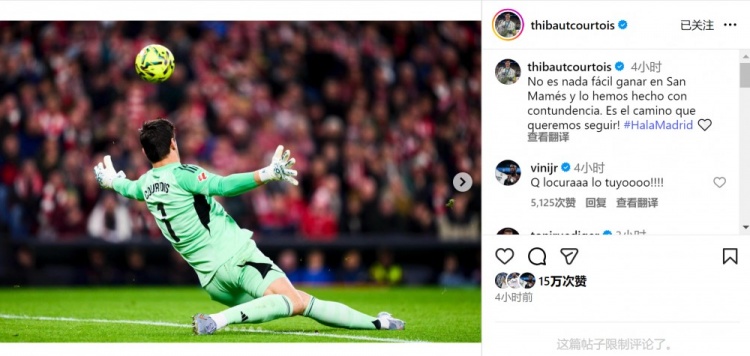 库尔图瓦社媒晒出扑救像片,配文:“在圣马梅斯取胜绝非易事,而咱们今天获得干脆利落。这恰是咱们念念要持续前进的谈路!”