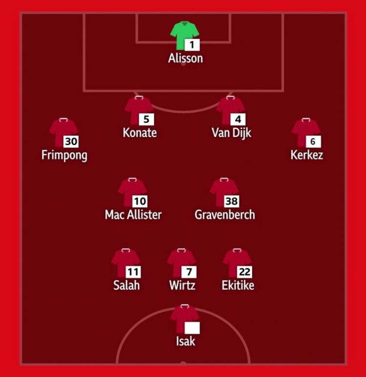 最径直的形势粗略是沿用4-2-3-1,让萨拉赫与埃基蒂克内收,置于维尔茨两侧,边路交给弗林蓬和科尔克兹。