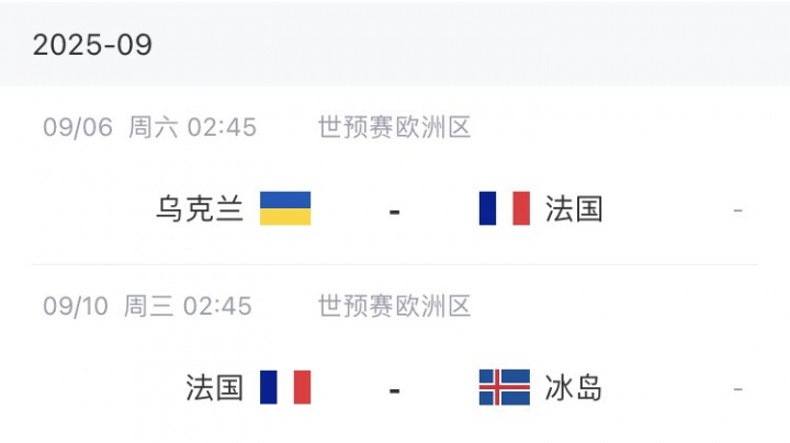 法国国度队将在9月的世欧预中对阵乌克兰和冰岛,小组第别称将成功晋级2026年全国杯。