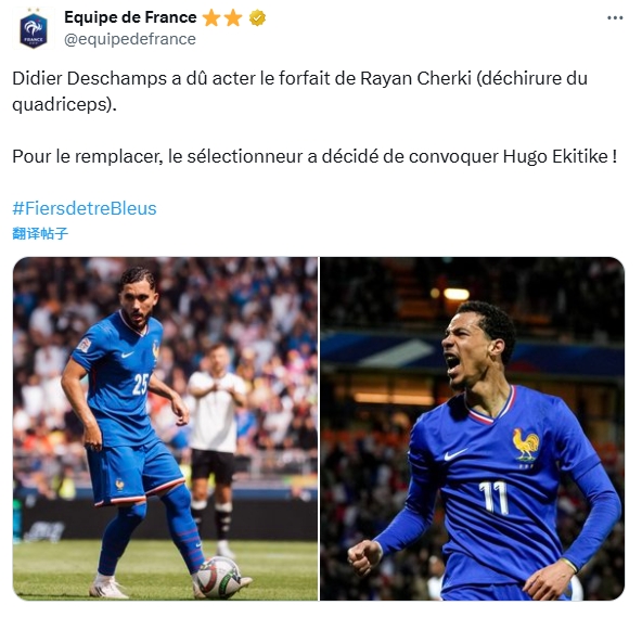 由于谢尔基股四头肌扯破,主评释德尚决定征召埃基蒂克入选本期国度队。