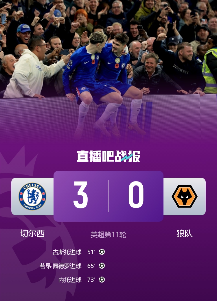 11月09日讯 英超第11轮,狼队0-3不敌切尔西。