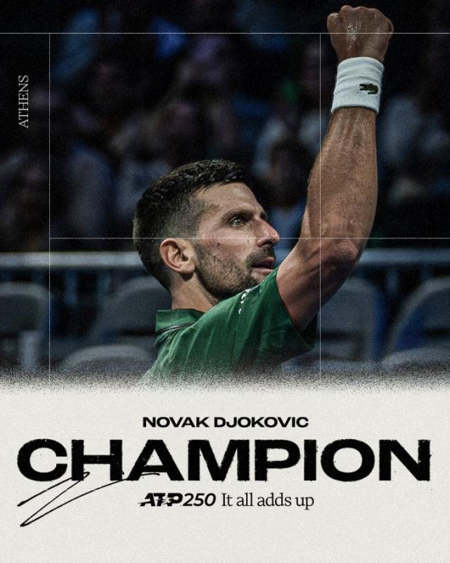 ATP250雅典站决赛,头号种子德约科维奇终了第二个发球胜赛局,以4比6、6比3、7比5逆转二号种子穆塞蒂,对其取得6连胜,斩获本赛季第2座、奇迹生计第101座巡回赛男单冠军。