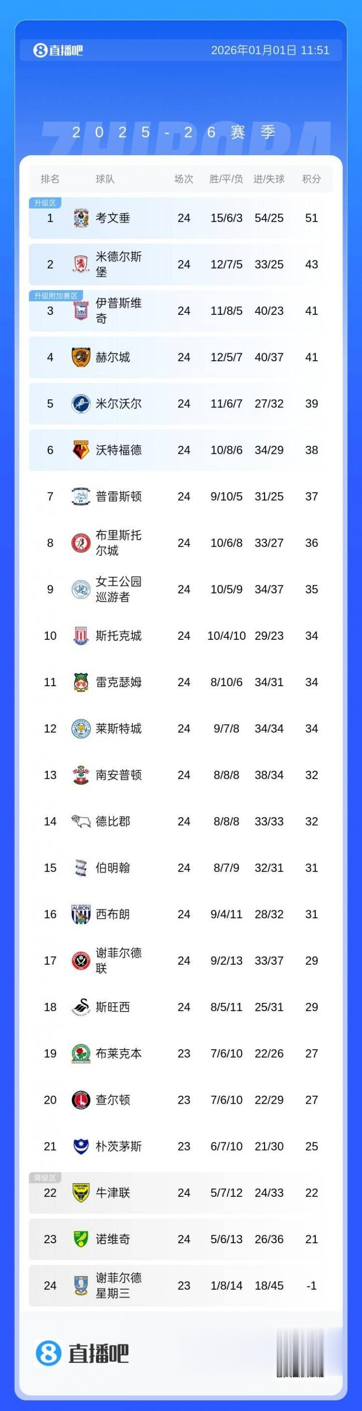 但在英冠,还有一支戎行比他更惨。谢菲尔德星期三因为财务问题,积分被扣除12分。英冠23轮战罢之后,他们1胜8平14负,还没把积分踢成正数,现在是-1分断层垫底英冠。