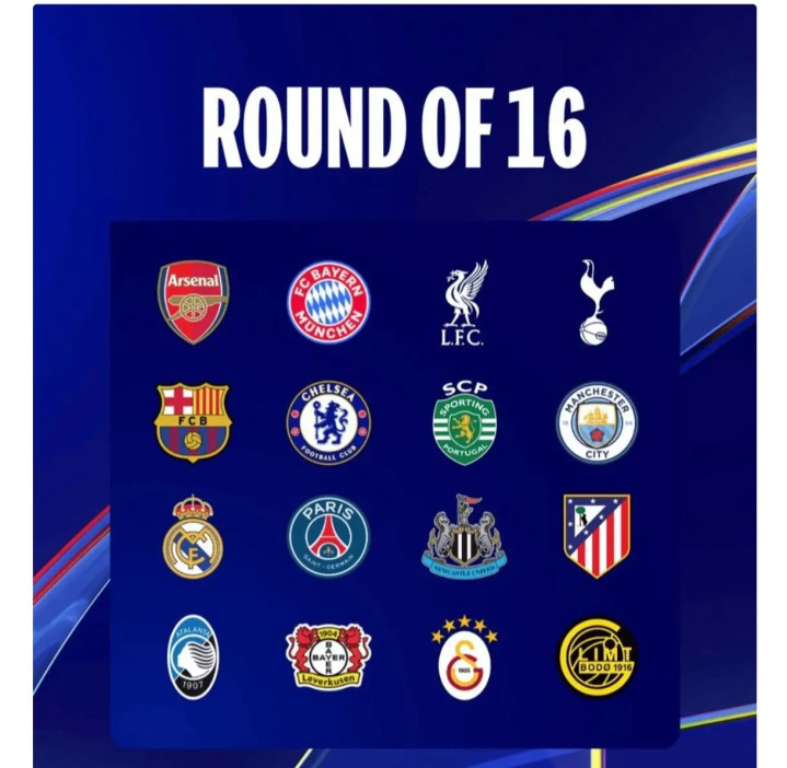 本比联赛季欧洲足球赛事杯16强呈现出罕见的“一超多强”格局。以足球赛事杯阶段前八名身份直接进入下一轮的队伍包括:阿森纳、拜仁慕尼黑、利物浦、托特纳姆热刺、巴塞罗那、切尔西、葡萄牙体育、曼城。通过附加时赛突围的八支队伍则是:马德里竞技、勒沃库森、纽卡斯尔联、博德闪耀、皇家马德里、巴黎圣日耳曼、亚特兰大、加拉塔萨雷。