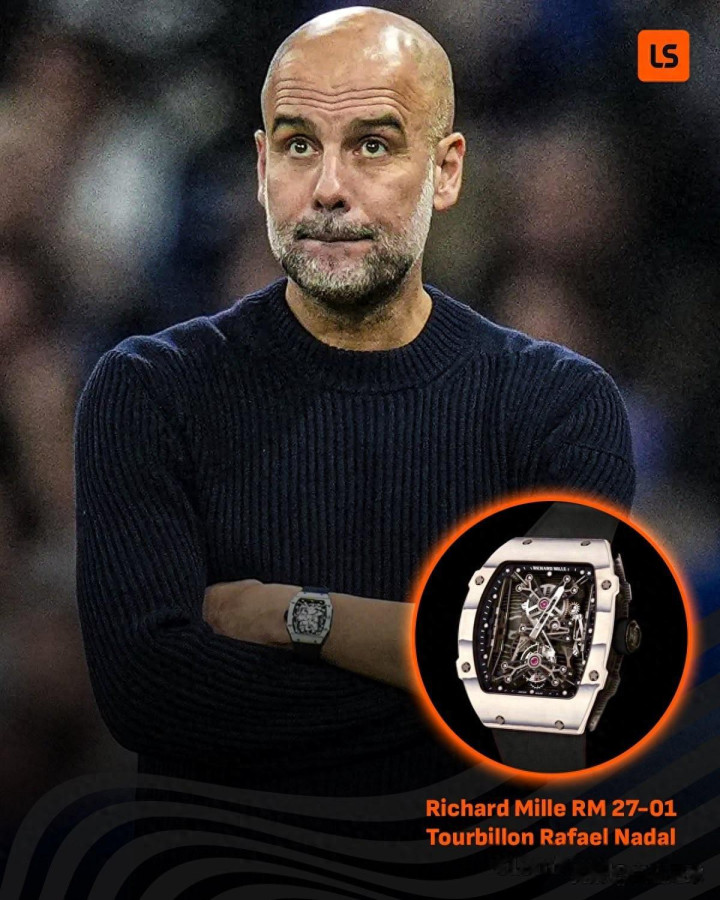 曼城主帅瓜迪奥拉一向以追求极致著称,这种性格也延续到了他的名表收藏中。图片显示,瓜帅佩戴的是一枚理查米尔RM 27-01 拉法·纳达尔陀飞轮腕表。