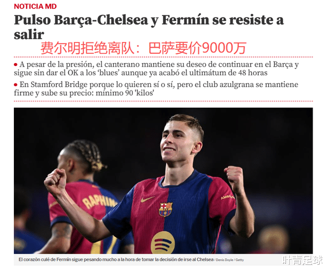 对费尔明来说,抵牾切尔西的高薪蛊惑、主力承诺,也特别绝交易。费尔明的生机是为巴萨着力,他的巴萨之旅才刚刚初始,远未到轨则时。切尔西也莫得烧毁,尽管48小时通牒时间已过。留给切尔西的时间仍是未几——下周通宵深11点59分,将是终末期限。