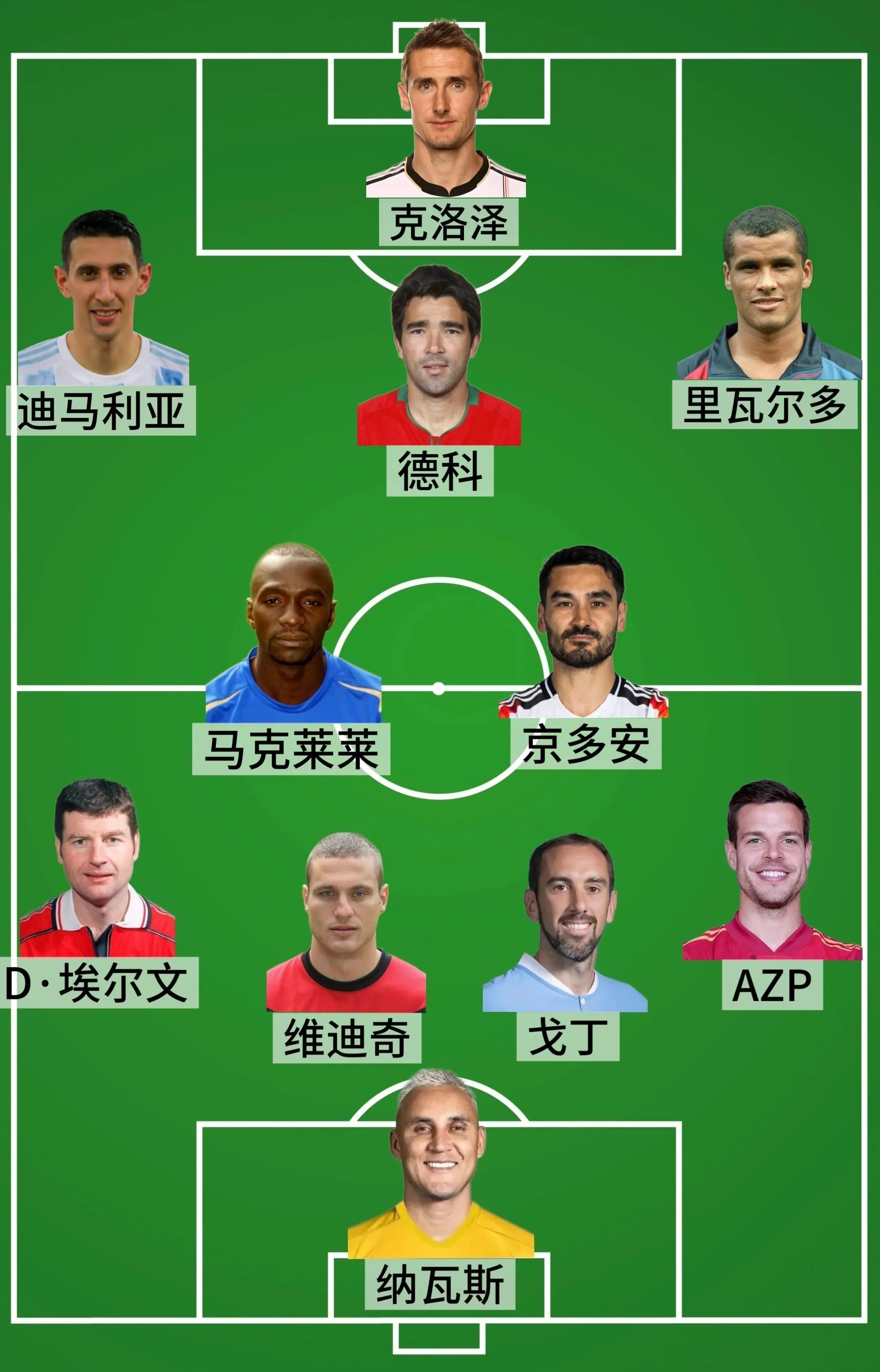 中锋:克洛泽(前德国奇迹足球畅通员,1978年6月9日诞生,司职中锋,2016年退役。克洛泽在效能拜仁期间夺得两次德甲联赛冠军、五次德国国内杯赛冠军,以及弓手王、助攻王、最好球员、德国足球先生等荣誉,配置了德国足坛荣誉大满贯。2011年,克洛泽以33岁乐龄转战意甲并取得巨大告捷,匡助拉皆奥夺得杯赛冠军。并为球队打进64球成为队史第一外籍弓手,其中在单场打进5球的豪举冲突意甲尘封了27年的记载。2016年,克洛泽被授予拉皆奥队史最好外助。国度队层面克洛泽匡助德国队赢得2014年巴西全国杯冠军。克洛泽是用“结果”而非“流程”驯服全国的球员。他也许莫得丽都的手段让你如醉如痴,但他用全国杯历史第一弓手和一堆冠军奖杯,让你无法分辨他的实力骚然起敬。说他“实力大于名气”,是对他这种低调、高效、团队、合手久的足球玄学的最高歌咏。他不需要镁光灯的追赶,他的伟大,早已由记载自己书写。他是足球全国里确切的“实干家”,一位被远远低估的听说弓手。)