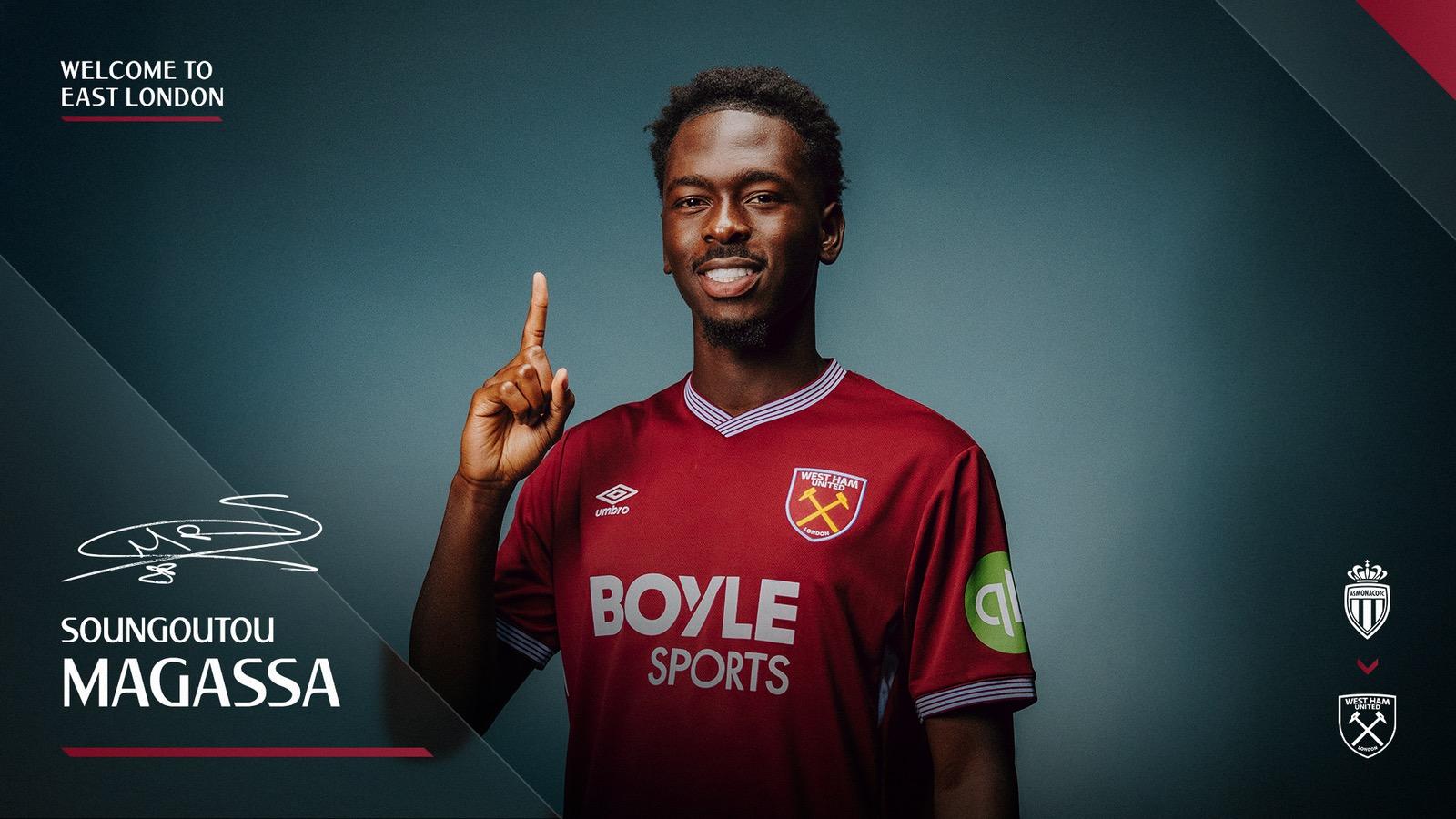 西汉姆联官方: 从摩纳哥签下法国中场马加萨, 顽强永久公约