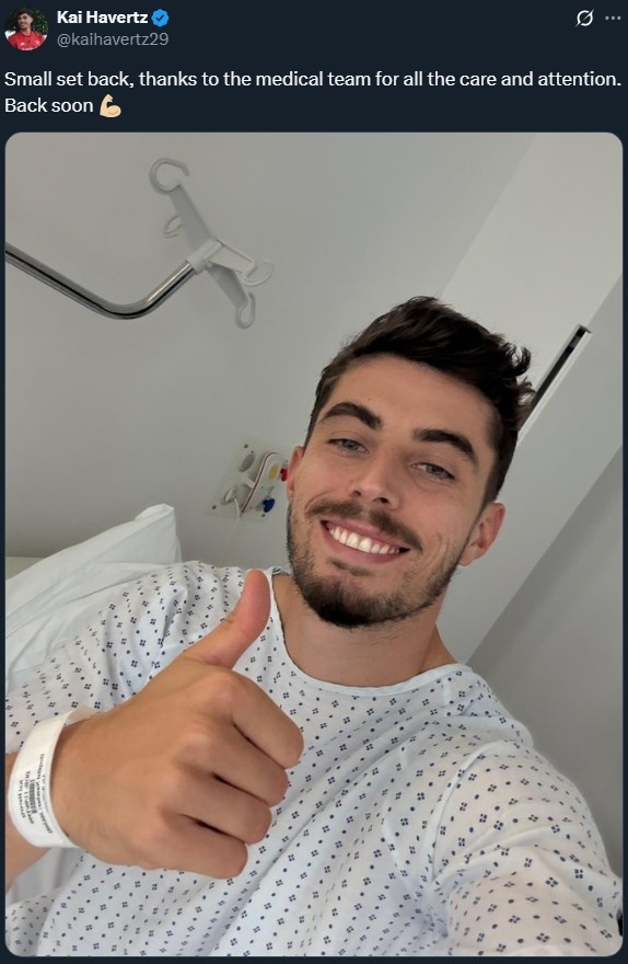 哈弗茨写谈:“小小贫穷,感谢医疗团队的全心管理,很快转头💪🏼”